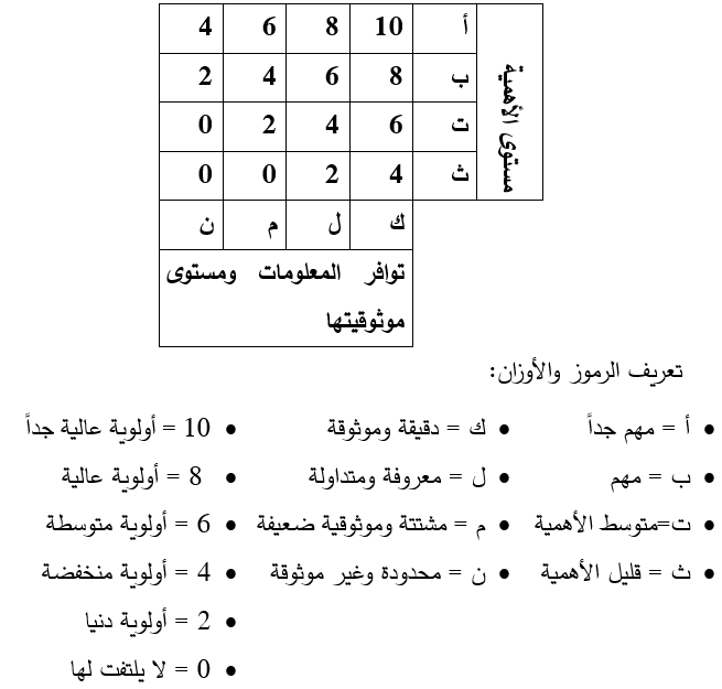 3.معايير التقييم: أ = مهم جداً، ب = مهم، ت = متوسط الأهمية، ث = قليل الأهمية.